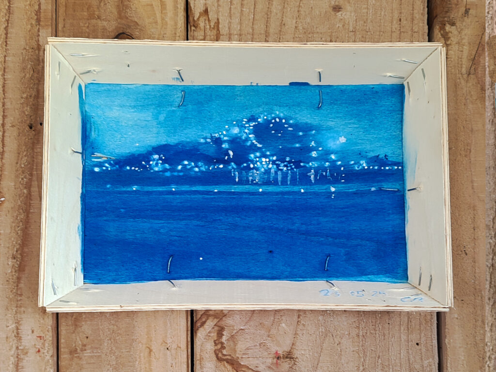 crates provided by the Tabourriech Oyster company. I chose to use one crate a day as a support for a series of works called “Île Singulière”, the title of a famous poem by Paul Vallery who himself was born in Sète.