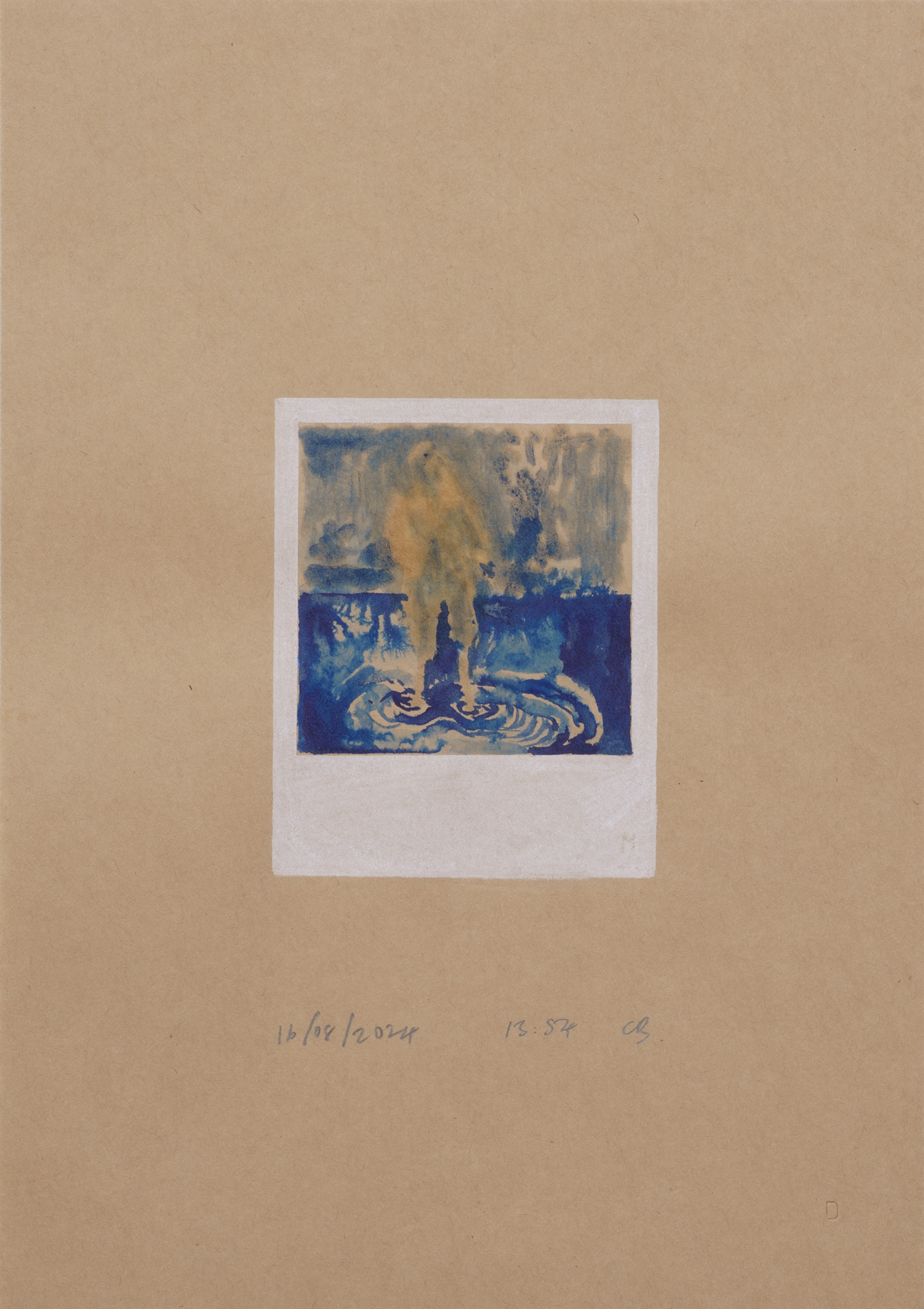 The publishers Levant selected a painting of mine from the MO series for their publication of the epic poem ‘Tanaïs’. The MO series were all based on flood damaged photos and my memories of day to day life and dreams between 2024-25. This drawing was based on the memory of a dream about a man on stilts in shallow water.